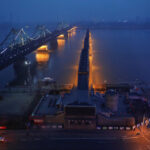 A breathtaking night view of a historic bridge, illuminated beautifully over the river, reflecting its rich history and charm.