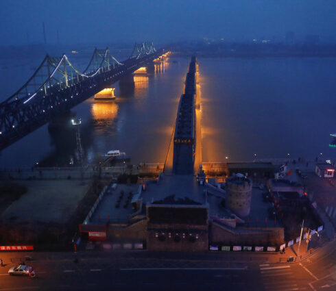 A breathtaking night view of a historic bridge, illuminated beautifully over the river, reflecting its rich history and charm.